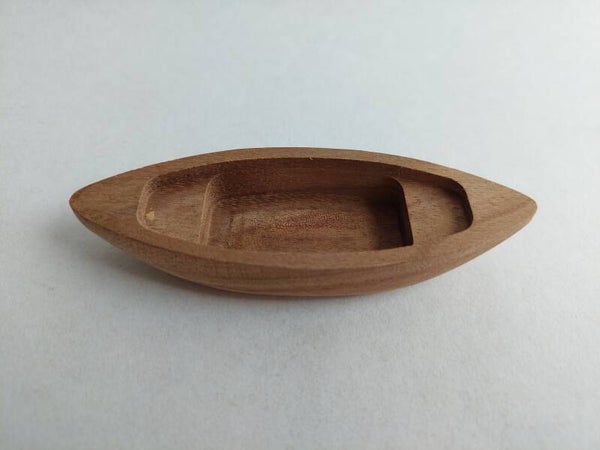 Houten bootje van 10 cm lang en 3.5 cm breed.