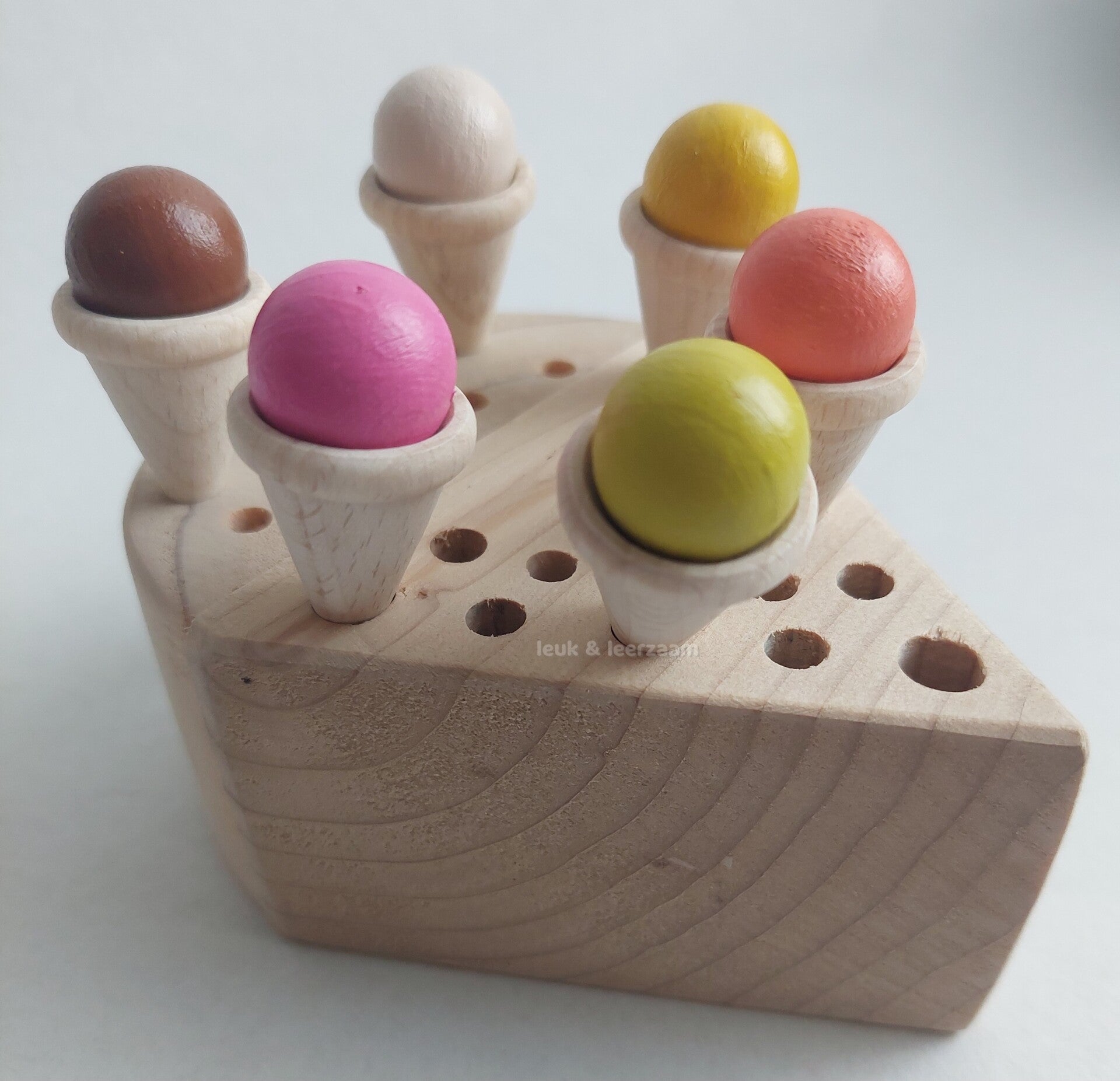 Houten ijsjeshouder met 6 mini ijsjes