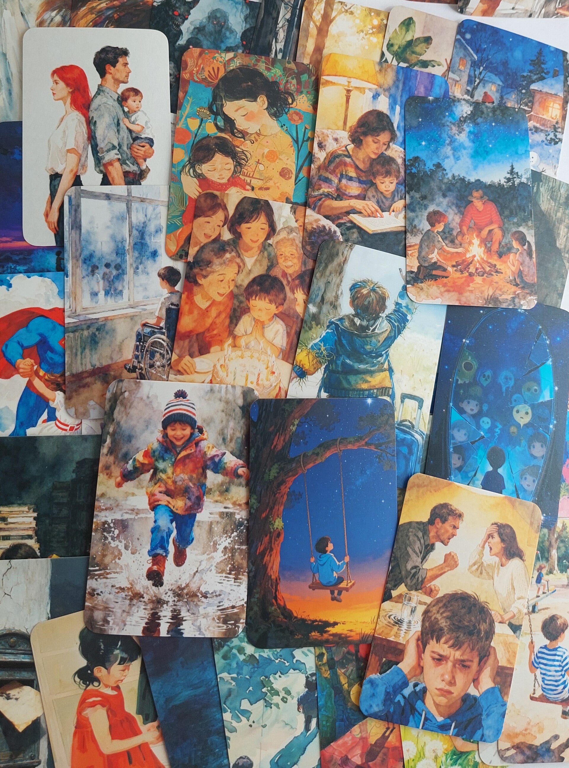 Diverse afbeeldingen met emoties, gevoelens, gedachten , situaties en gebeurtenissen in een negatieve en positieve sfeer.